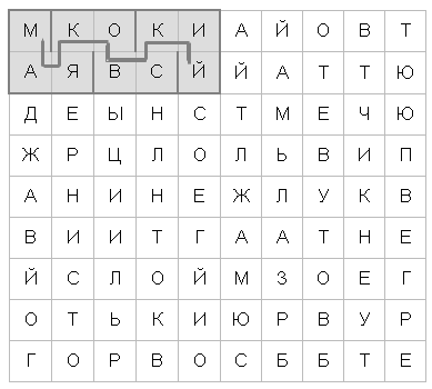Ваша задача – найти и вычеркнуть ответ в сетке. Буквы могут располагаться как по вертикали, так и по горизонтали, но не по диагонали.