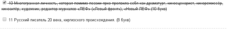 При правильном ответе вычёркивается вопрос, на который был дан ответ.