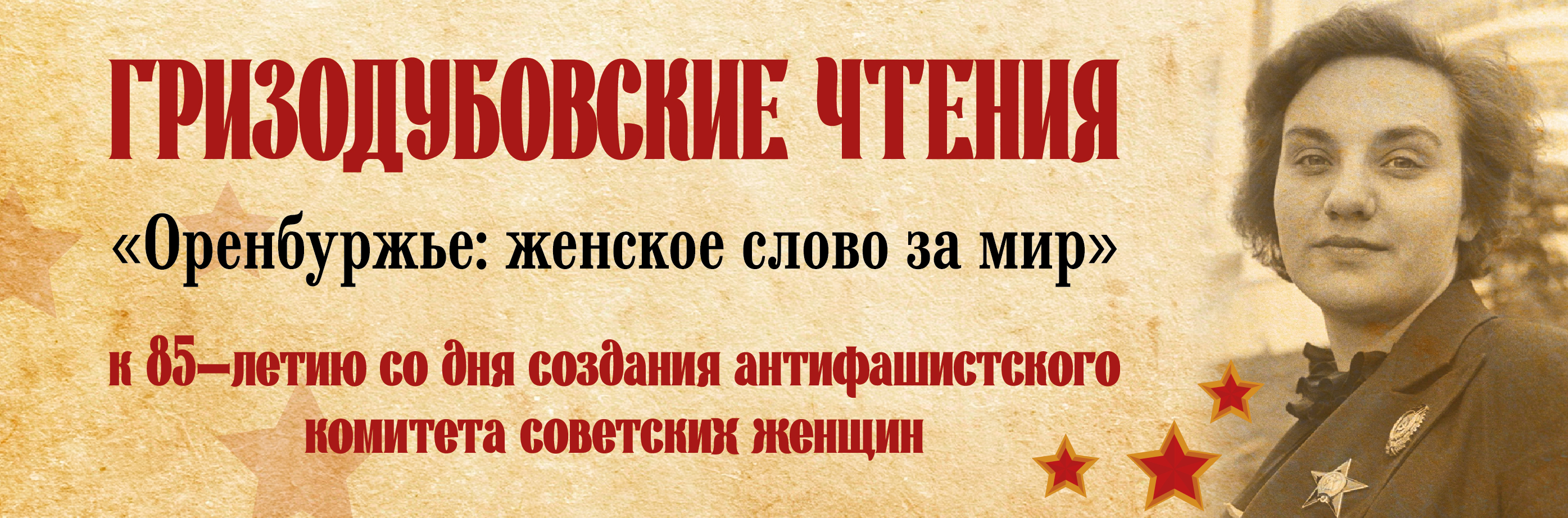 Гризодубовские чтения в Оренбургской области «Оренбуржье: женское слово за мир» посвящены 85-летию создания Антифашистского комитета советских женщин и направлены на увековечение памяти первого председателя, летчицы Валентины Гризодубовой. Именно она стала символом объединения женщин всего СССР в борьбе против фашизма.